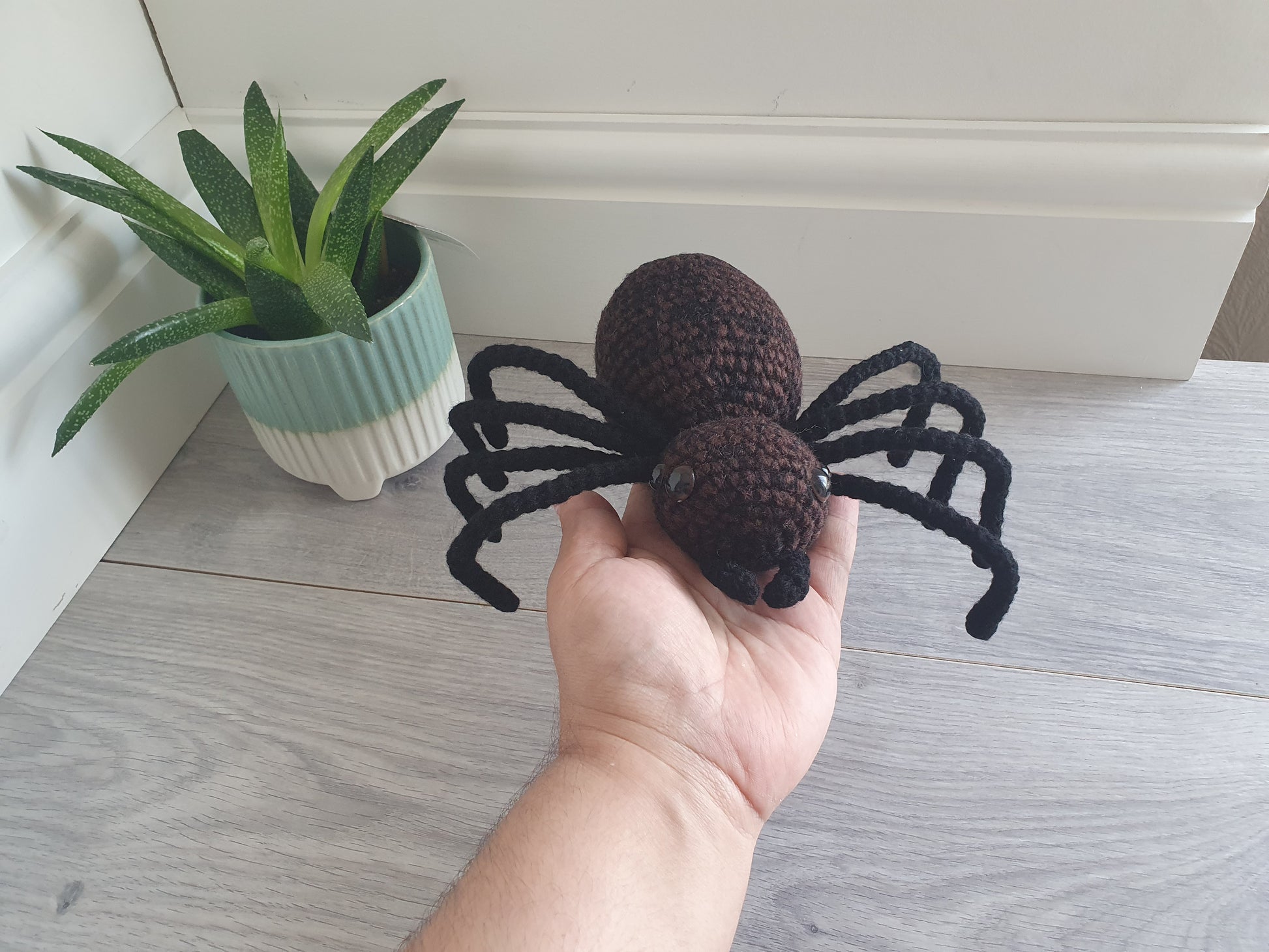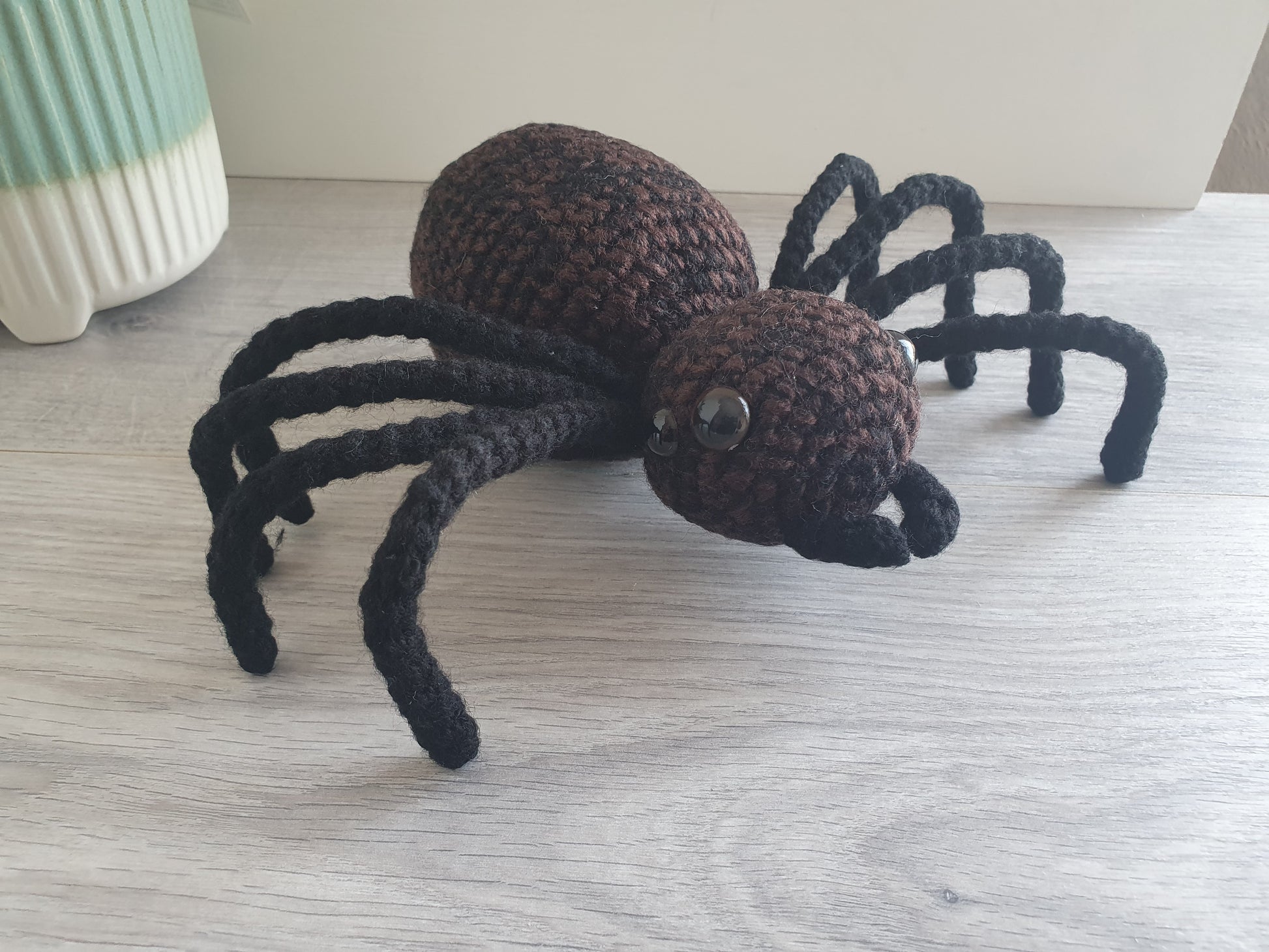 Handmade crochet spider named Webby. Lovely as a play toy, to be given as a gift or just for decoration, specially great for Halloween, spooky but cute!