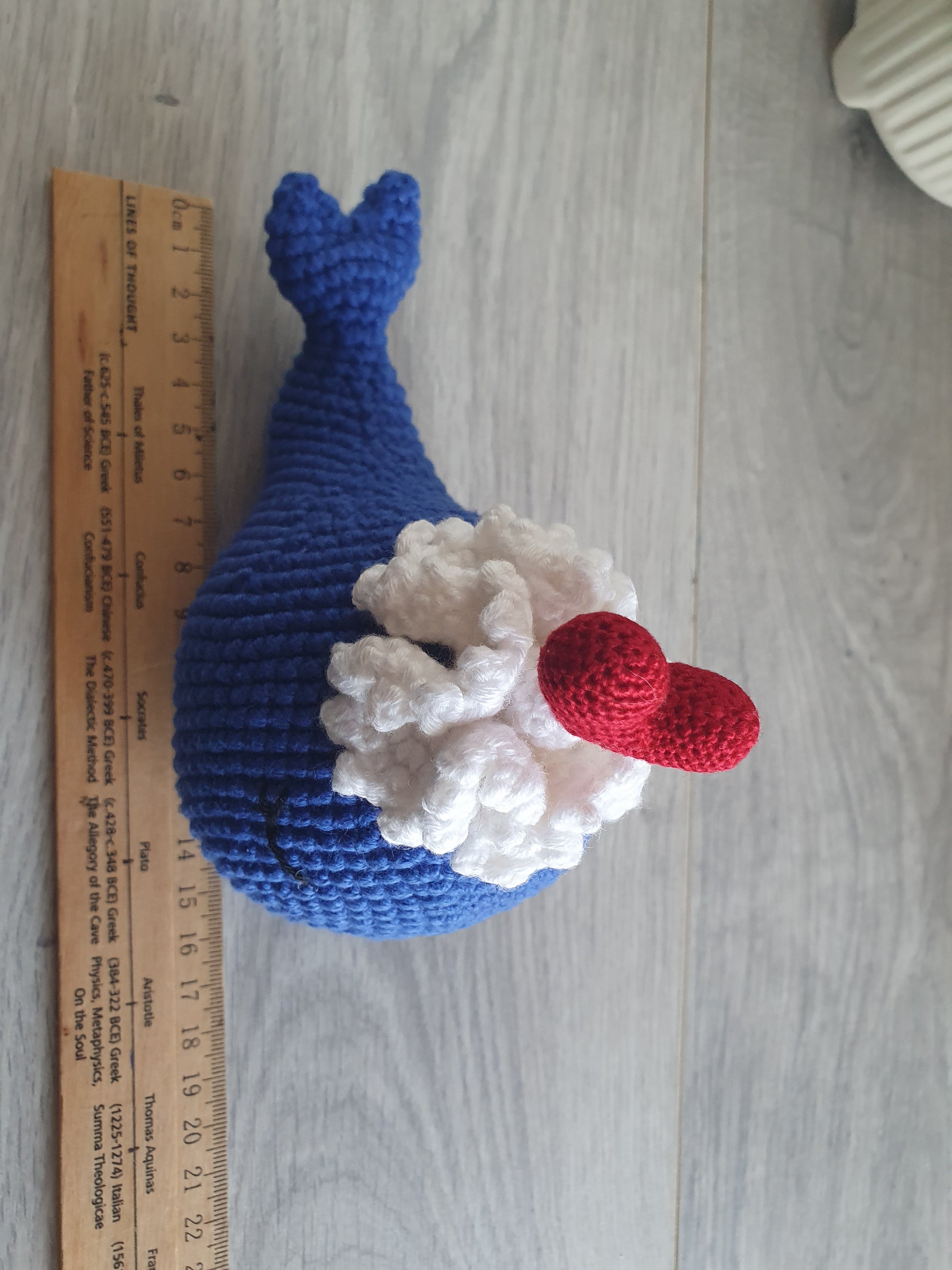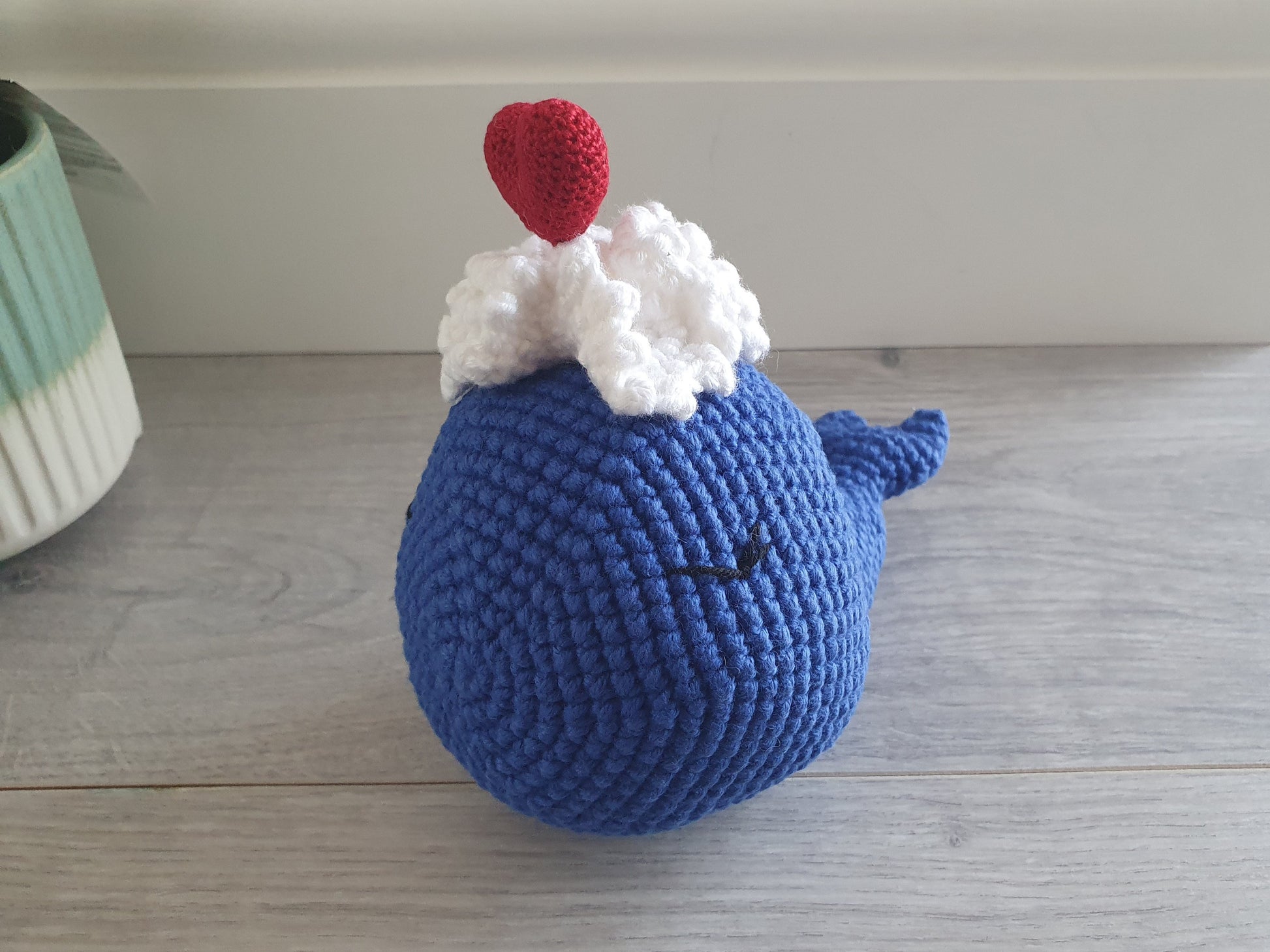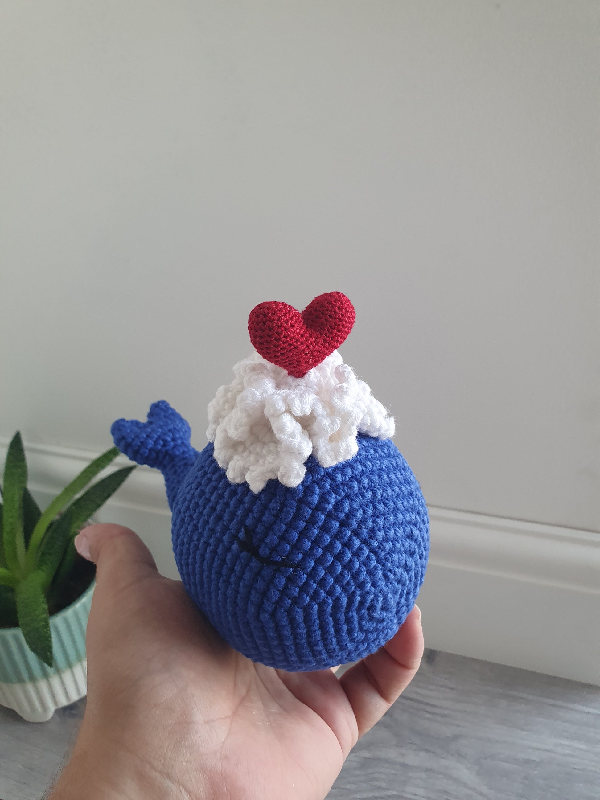Handmade crochet whale named Valentina. Lovely as a play toy, to be given as a gift or just for decoration, specially great for Valentine's day, sweet & cute!